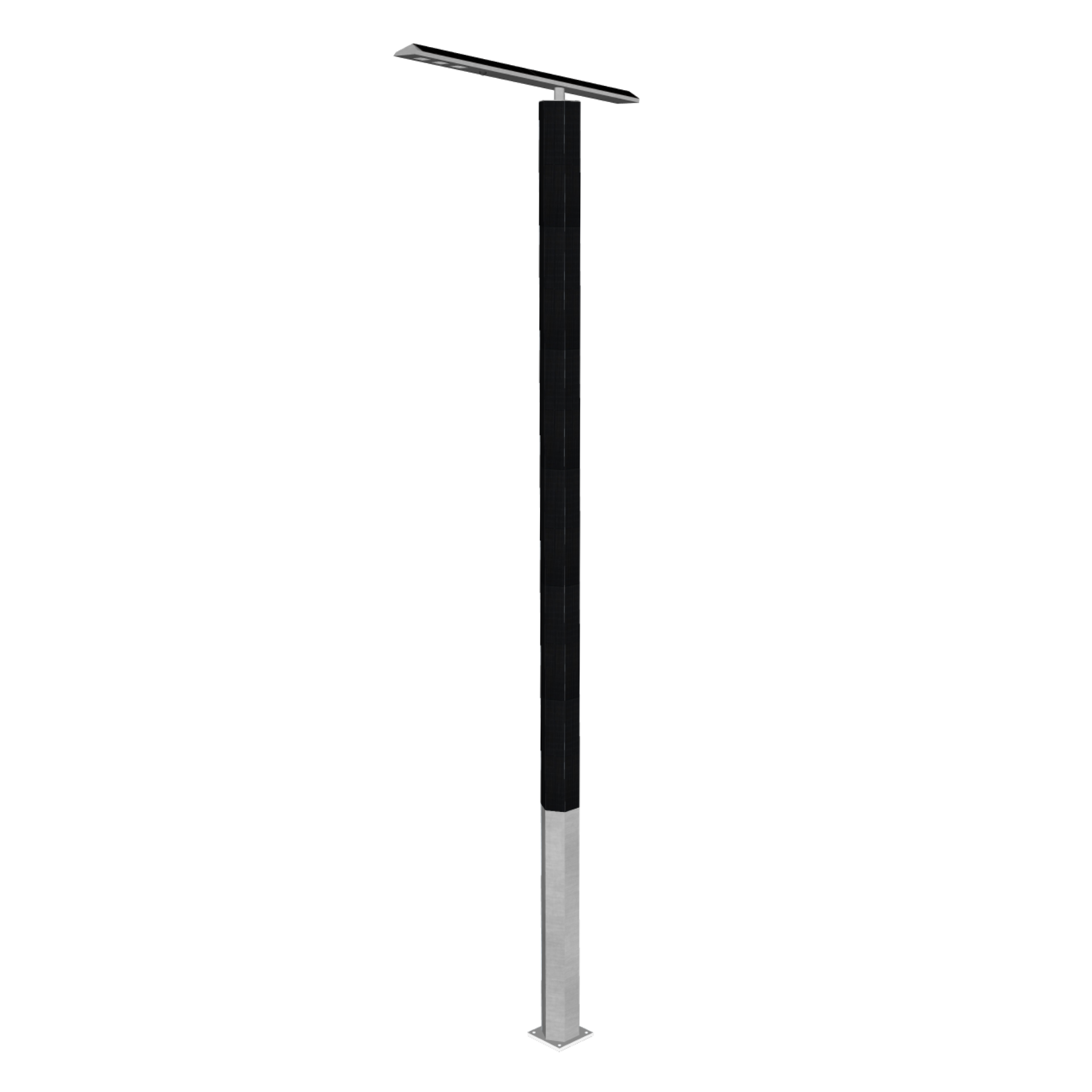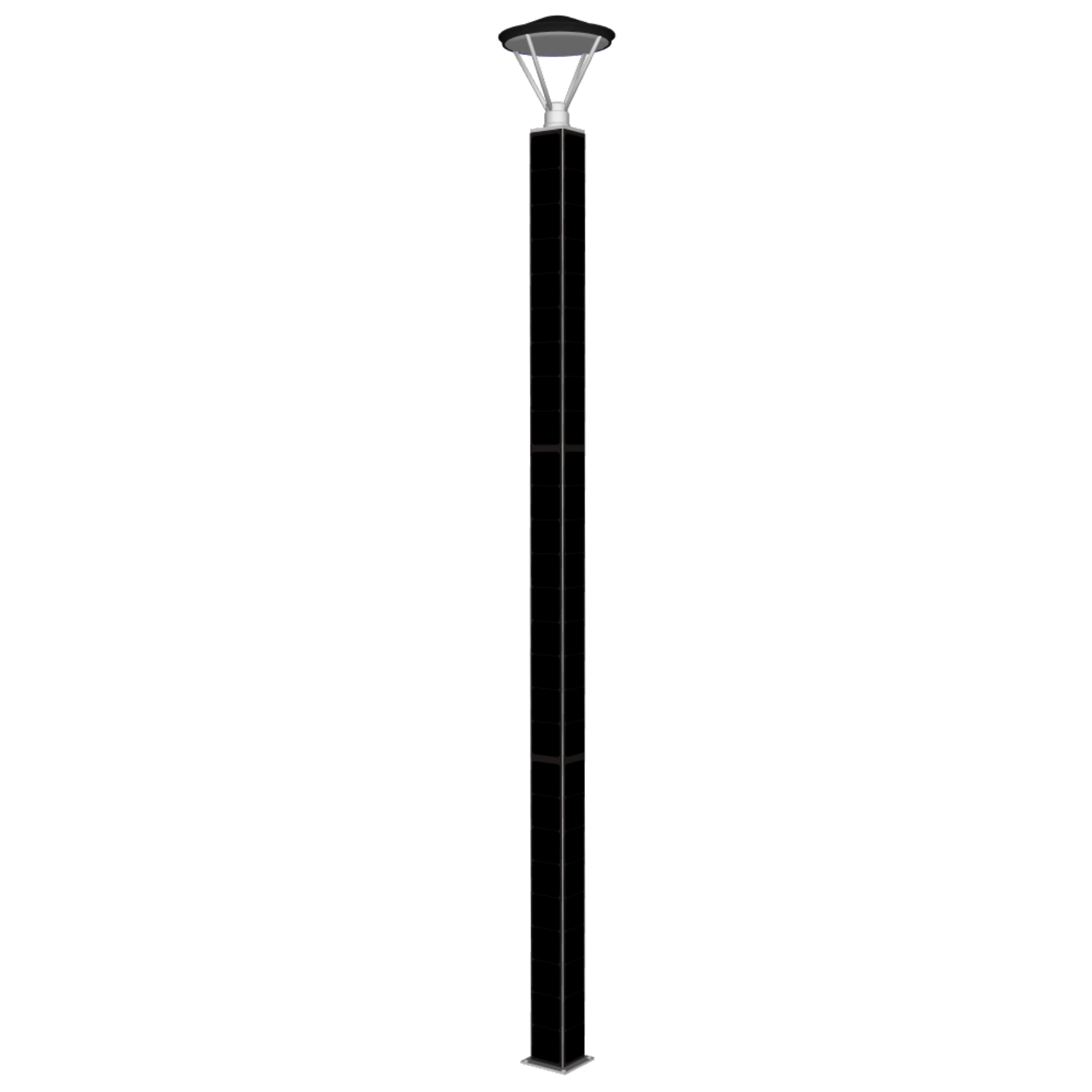 Solar panels are fabricated on all six sides vertically. Snow does not stick to vertical panels and all six sides maximize energy production. The pole is versitile and can be placed in any direction with no inefficiencies.
